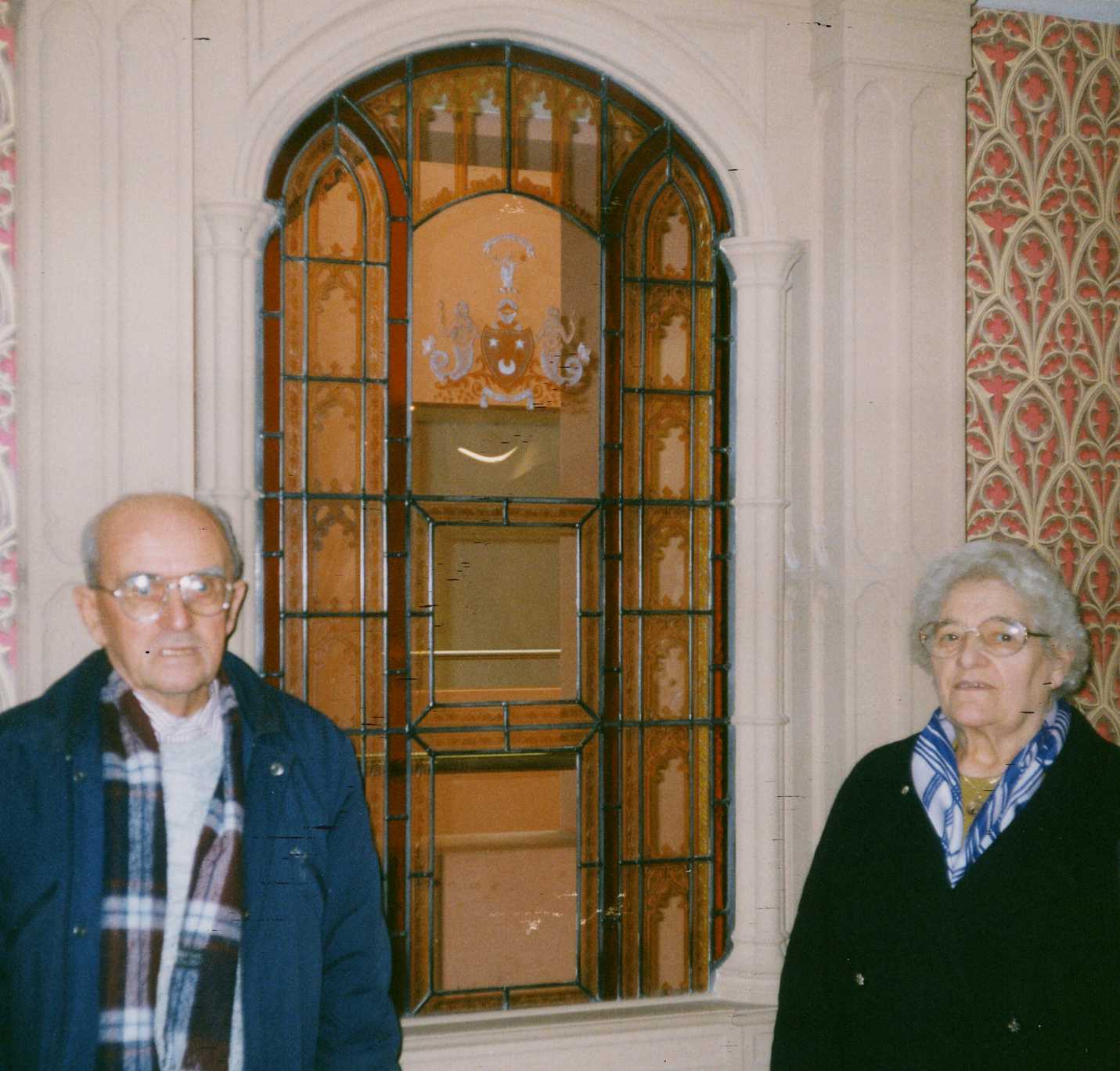 The stained glass window behind Mum and Dad, what window?