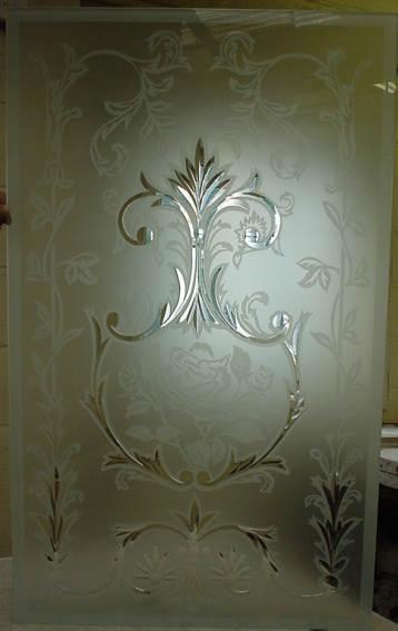 Brilliant cut, acid etched rose design