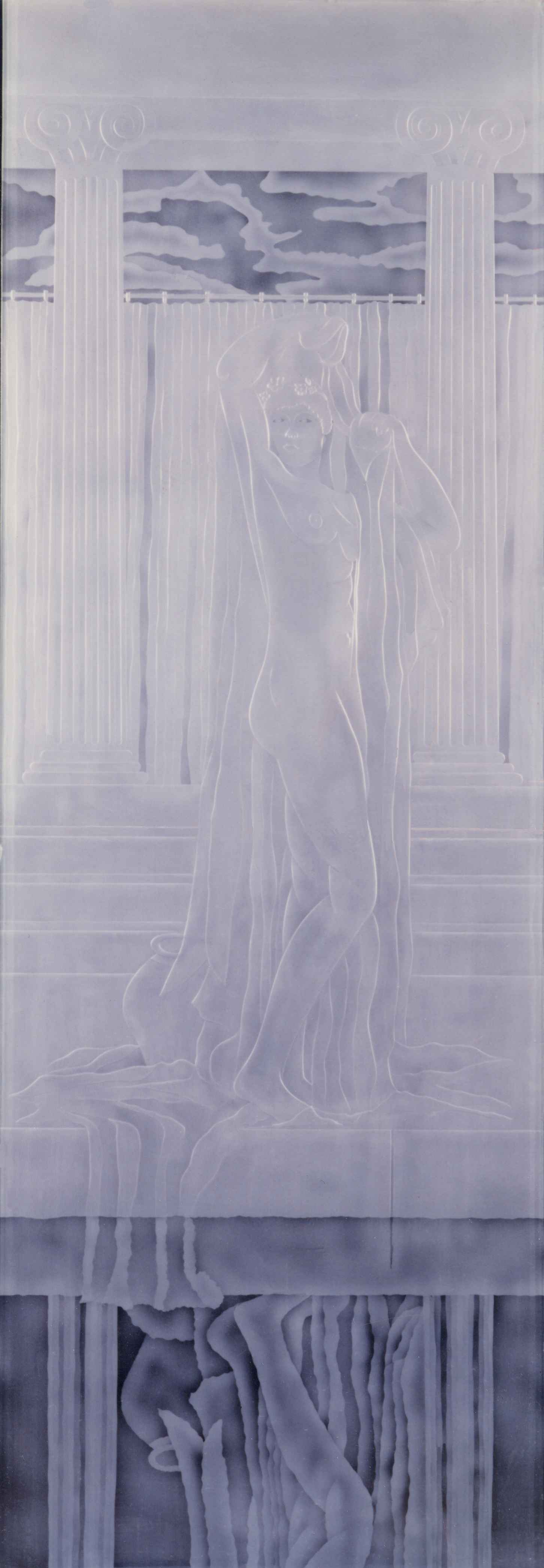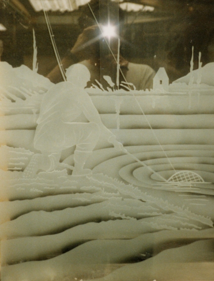 Sandblasted design added to a Brilliant cut door panel. This sandblasting is a simple one blast on clear glass.